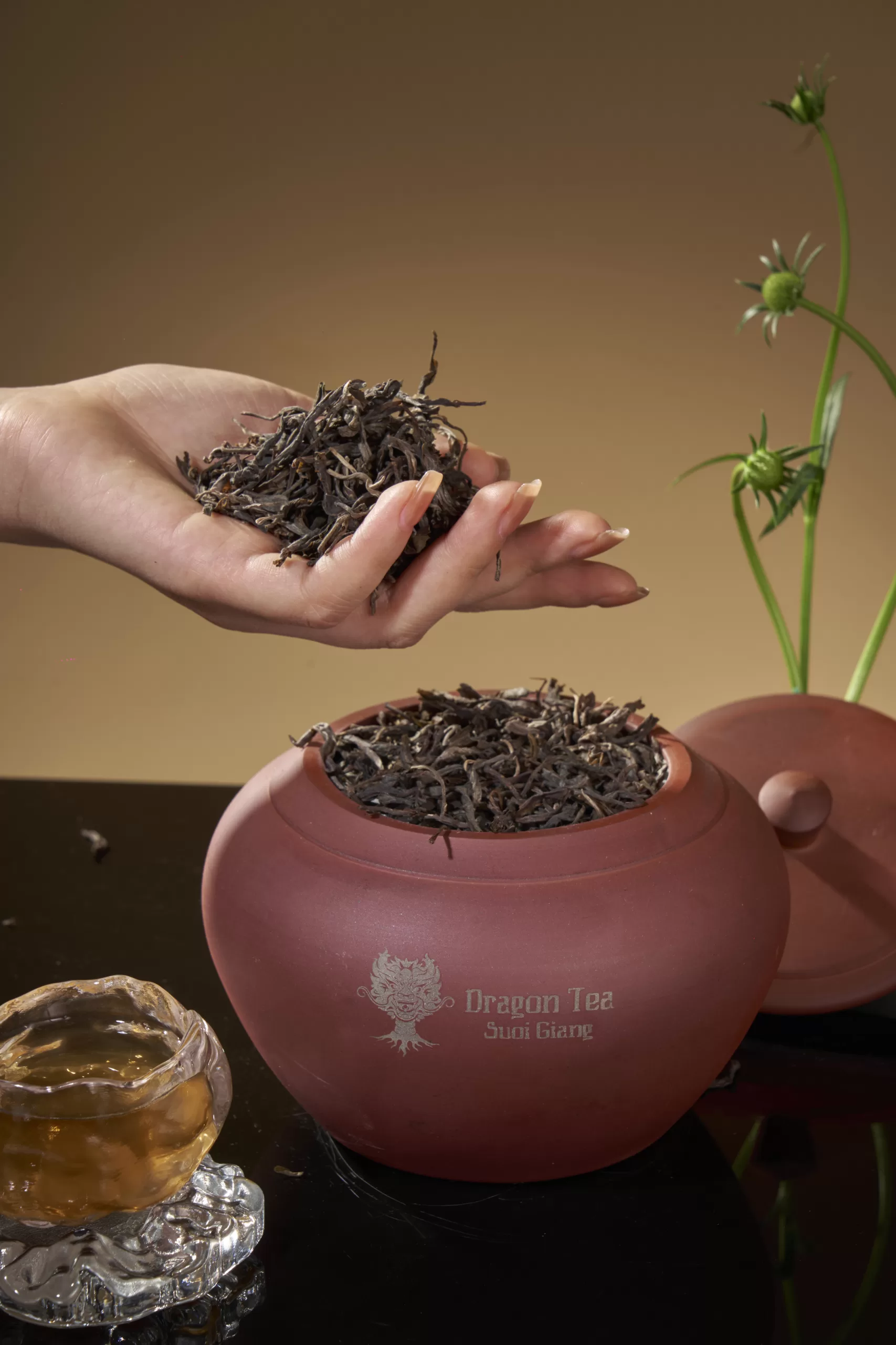 Nguyên liệu được thu hái thủ công theo tiêu chuẩn 1 tôm 1 lá non, chọn phần tinh túy nhất của cây chè để tạo nên chất trà dày, giàu dưỡng chất và hương vị đặc trưng. Sau khi thu hái, búp trà được vận chuyển bằng drone từ đỉnh núi về nhà máy, giúp rút ngắn thời gian vận chuyển, giữ trọn độ tươi và cấu trúc tự nhiên của búp trà.